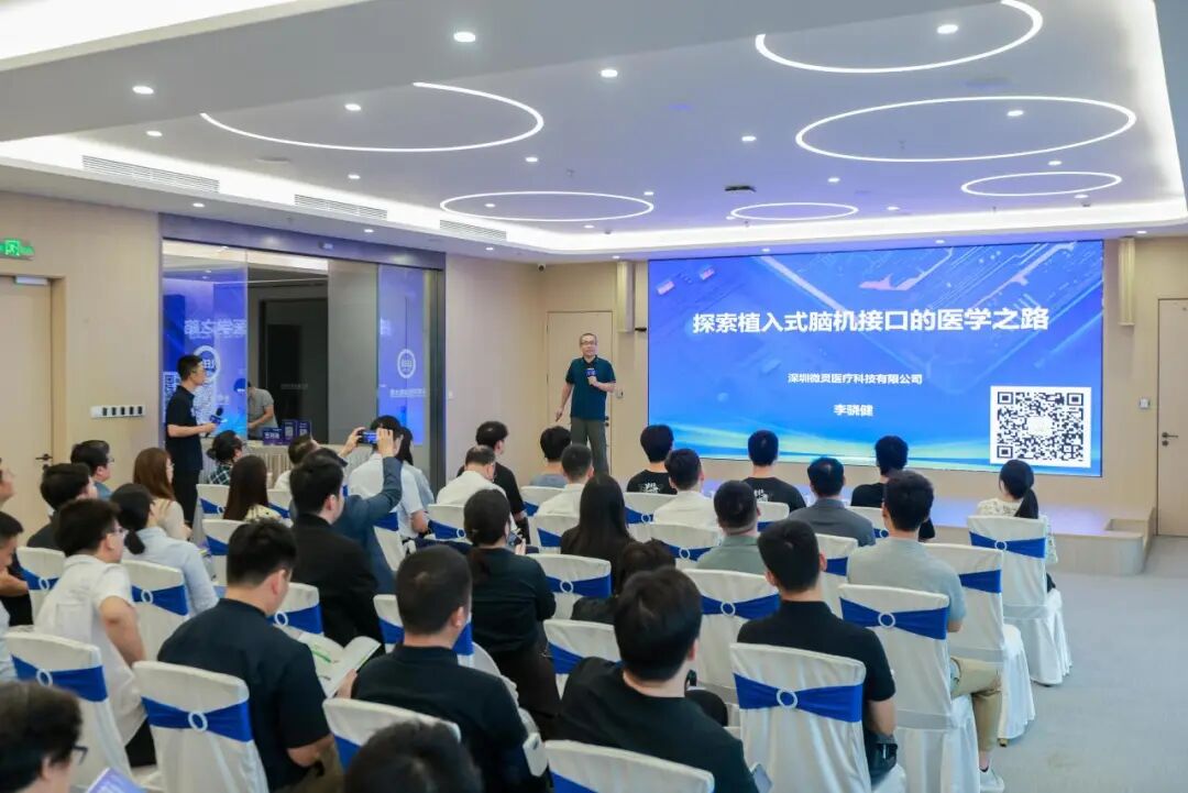 在主题分享环节,深圳微灵医疗科技有限公司创始人、南方医科大学粤港澳大湾区脑科学与类脑研究中心教授李骁健围绕植入式脑机接口作专题分享。他提出,脑机接口应以脑病诊疗为核心,聚焦“诊断+修复”主题,重塑神经环路、恢复神经功能,并介绍了所属团队围绕脑保护、神经修复、功能替代等领域开展的临床研究。