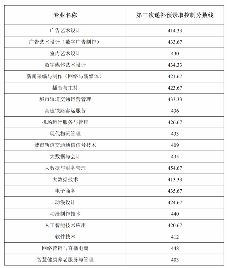依据我校2026年分类考试招生章程,我校按照“分数优先,遵循志愿”的原则,各专业均按计划录取。现将我校2026年分类招生第三次递补预录取控制分数线(综合成绩)公布如下: