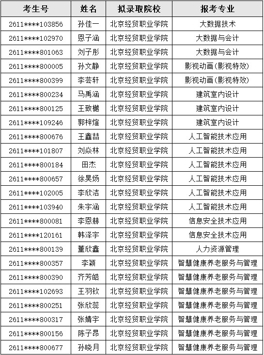 2026年北京高职自主招生第一次拟录取名单