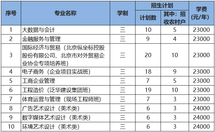 招生专业及计划