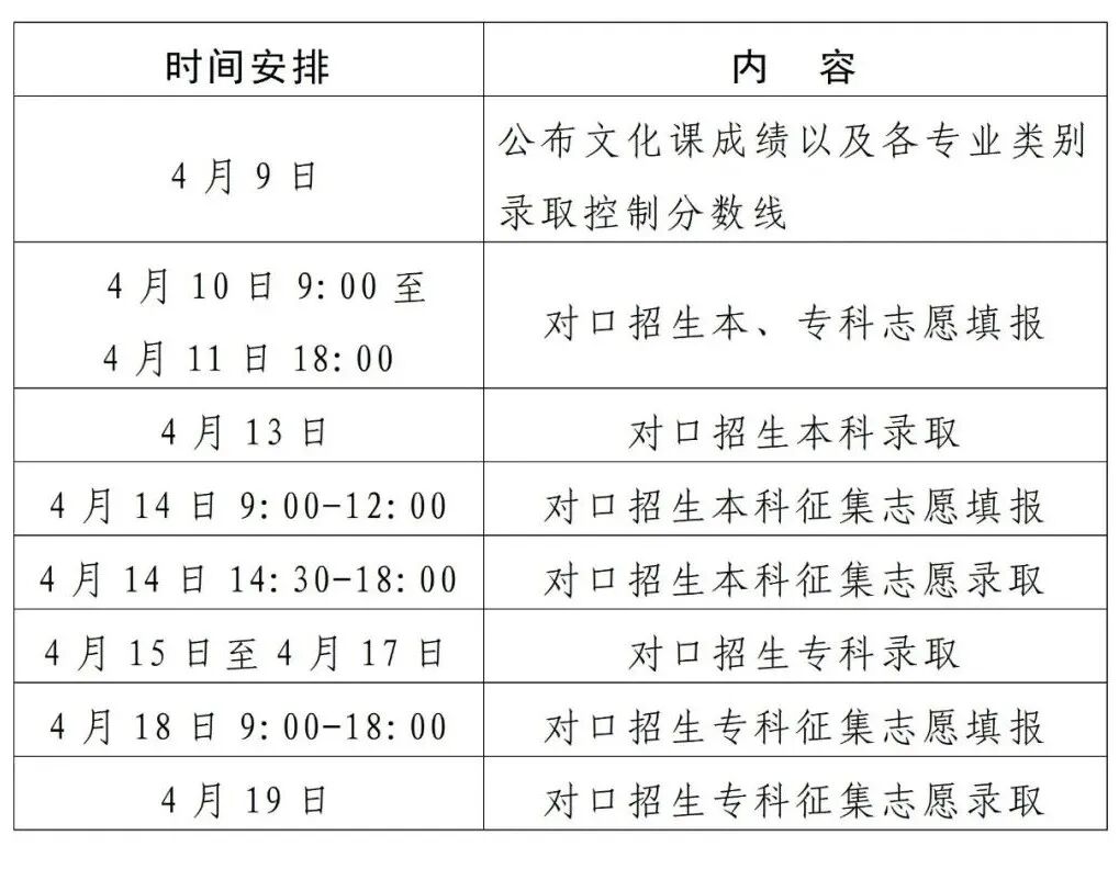 4月9日,公布对口招生文化课成绩。