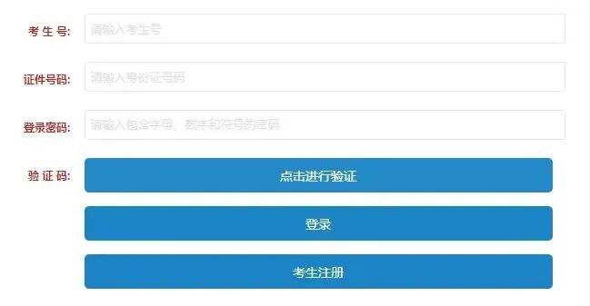 在考生登录区域输入考生的考生号、身份证号、登录密码和验证码,点击登录。