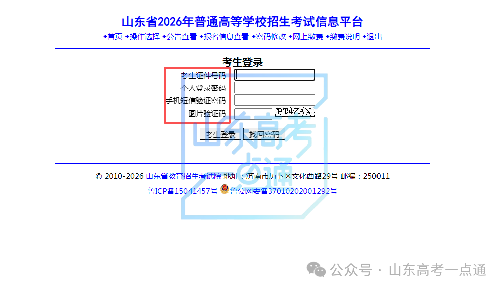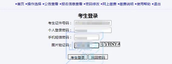 进入登录页面,如实填写考生证件号码、个人登录密码、手机验证码、图片验证码,如下图:
