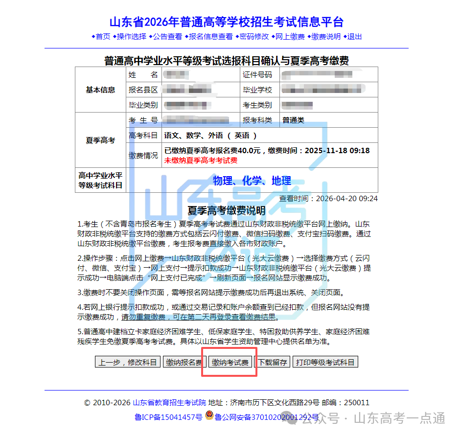 山东省2026年普通高中学业水平等级考试科目选报与高考科目缴费常见问题问答