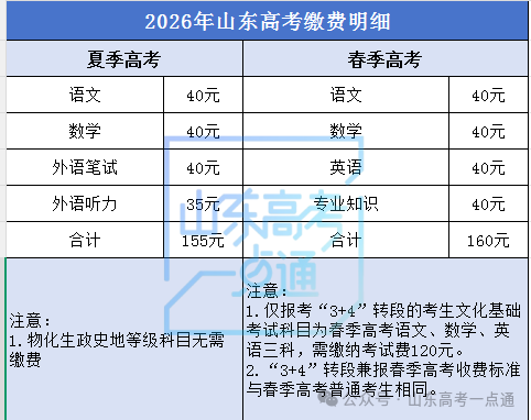 九、缴费说明1.春季高考考生需缴纳春季高考知识考试费用,包括语文、数学、英语及专业知识4个科目,每名考生需缴纳考试费共计160元。仅报考“3+4”转段的考生文化基础考试科目为春季高考的语文、数学、英语三科,需缴纳考试费120元,“3+4”转段兼报春季高考收费标准与春季高考普通考生相同。2.夏季高考考生需缴纳夏季高考全国统一考试语文、数学、外语、外语听力四个项目考试费,每名考生需缴纳考试费共计155元。等级考试科目无需缴费。3.前期已经完成资格审核但尚未缴纳高考报名费的考生,可于上述时间内首先完成报名费缴纳后,再进行科目选报并缴纳高考考试费。