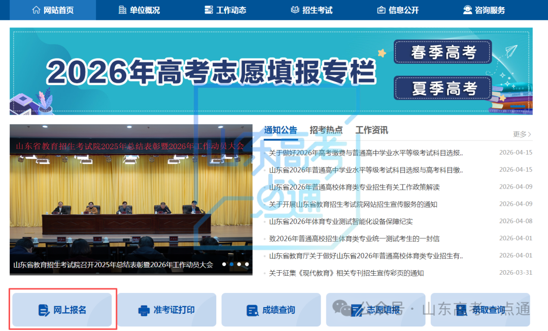 日前,山东省教育招生考试院发布了《关于做好2026年高考缴费与普通高中学业水平等级考试科目选报工作的通知》(点击链接查看)4月20日至24日(每天9:00—18:00),考生登录报名网站(https://wsbm.sdzk.cn)进行选报和缴费。其中,春季高考考生仅需缴纳春季高考知识考试费,夏季高考考生首先进行等级考试科目选报,然后缴纳夏季高考全国统一考试科目考试费。系统开放期间,支持考生修改政治面貌、考生类别(城市/农村、应届/往届)、录取通知书邮寄地址、家庭信息等部分个人信息,以考生最后一次填报内容为准。春季高考知识考试时间为5月9日至10日。