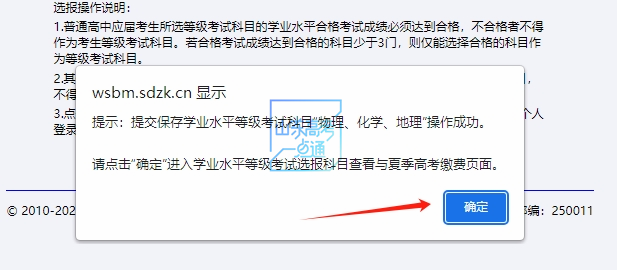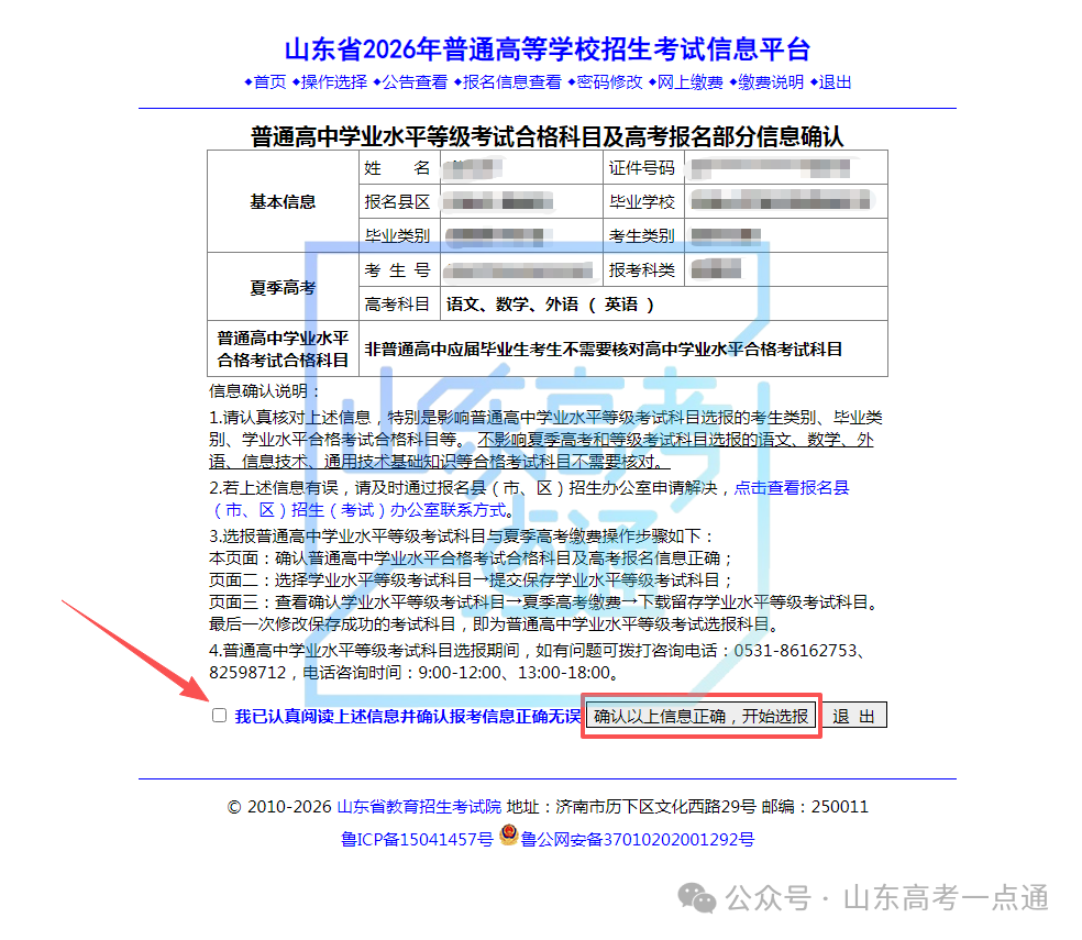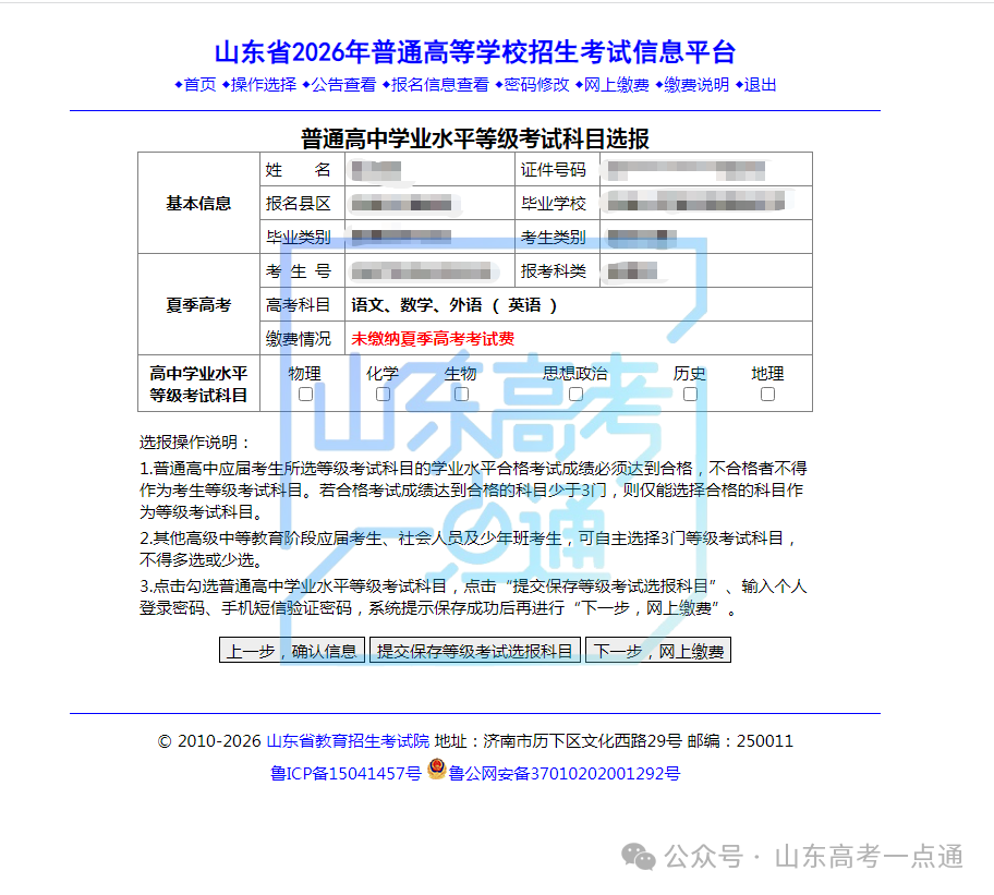 本页面:确认普通高中学业水平合格考试合格科目及高考报名信息正确;