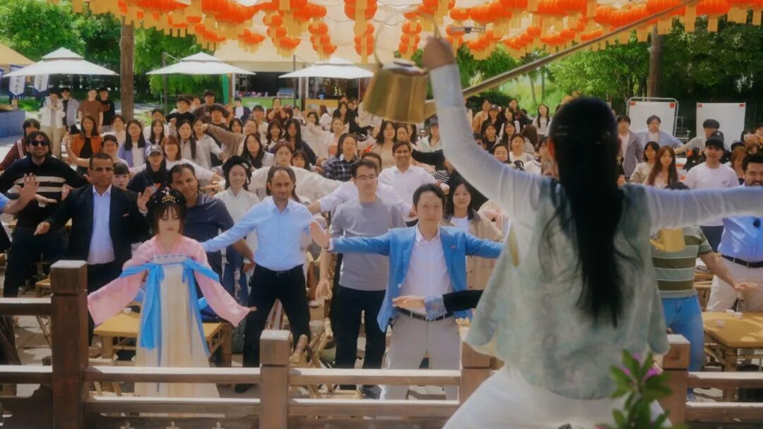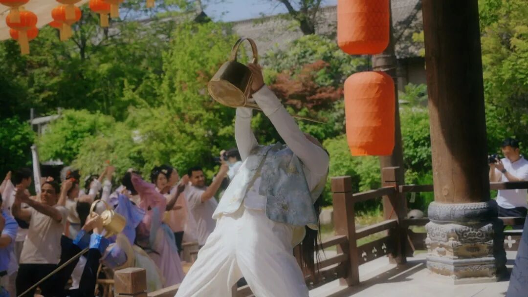 除了茶文化体验,中文系学生还在唐村上演了一场惊艳的汉服快闪表演。