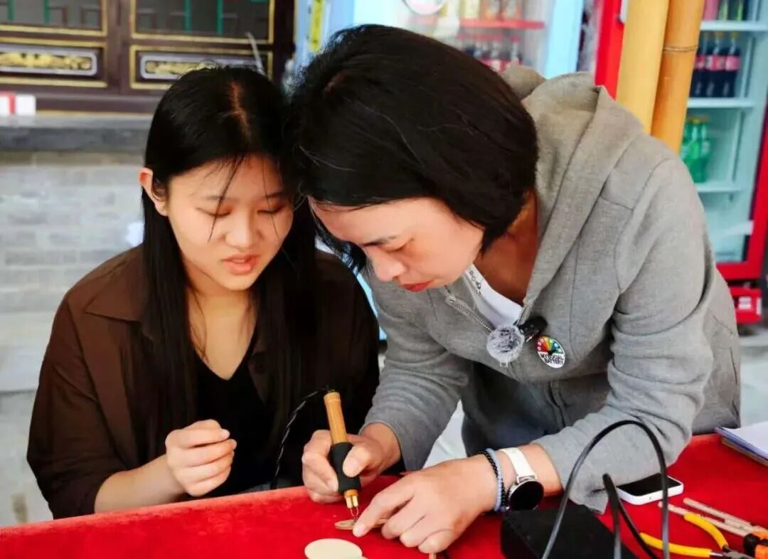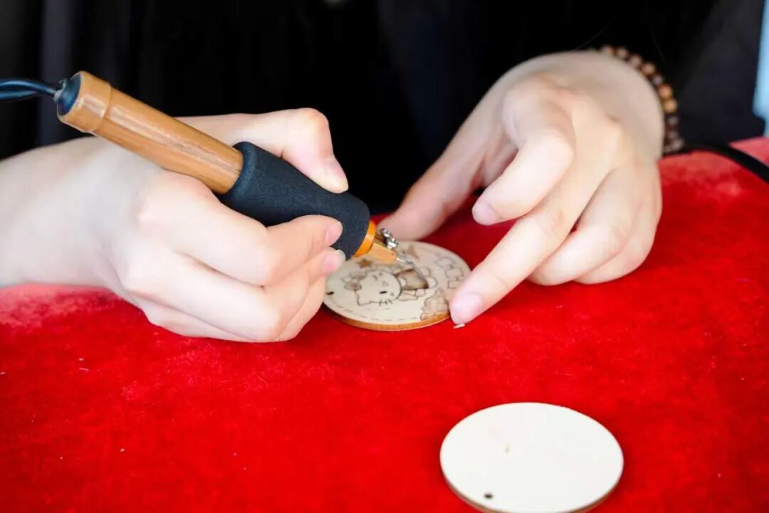 除此之外,部分同学体验烙画技艺,用烙铁在木板上勾勒线条、填充色彩,感受传统工艺的匠心与智慧;