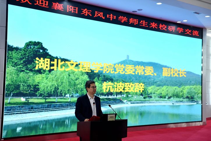 (招就处 通讯员 孙剑侠) 4月16日,襄阳东风中学校长王军率700余名高二年级师生走进学校,开展沉浸式研学实践。学校党委常委、副校长杭波热情接待。
