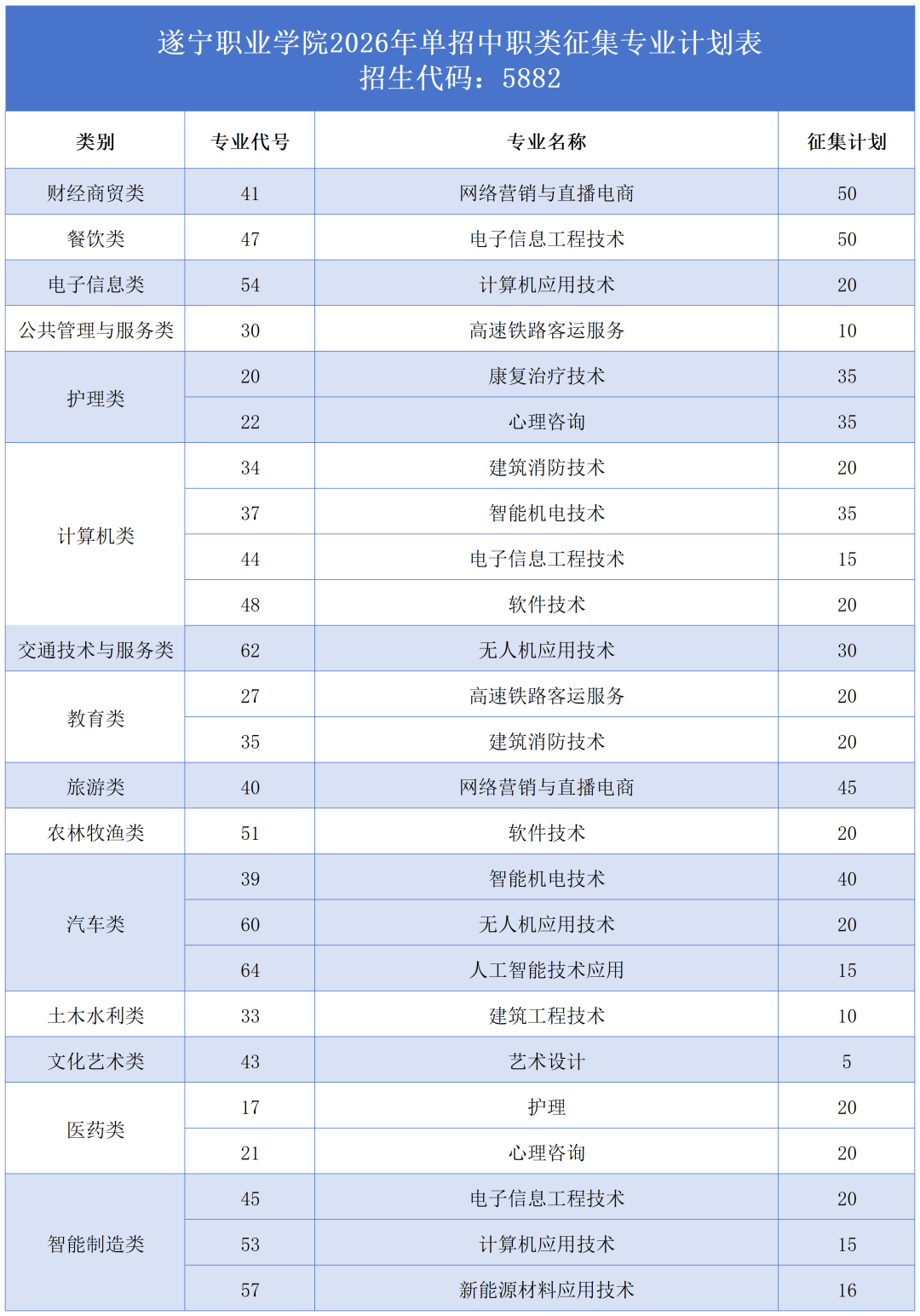 遂宁职业学院2026年高职单招征集志愿