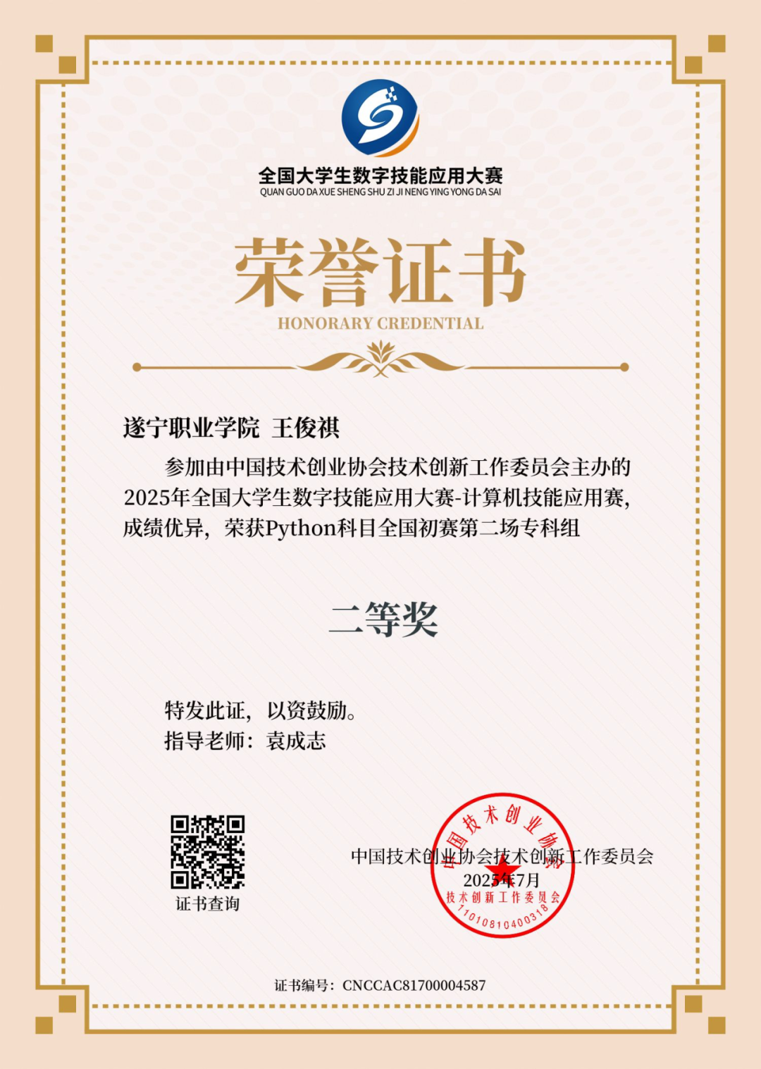 为主动响应未来产业对高素质技能人才的需求,学校将专业竞赛深度融入人才培养体系,以制度化、常态化的竞赛机制着力培养学生创新与实践能力。在被誉为职业教育“奥林匹克”的2024年“中银杯”四川省职业院校技能大赛中,作为新办高职院校,学校首次参赛即实现“开门红”,一举斩获8项省级大奖(二等奖4项、三等奖4项),获奖总数位列全省同批新办高校首位。