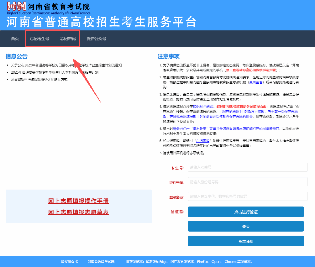 河南省普通高校招生考生服务平台(https://pzwb.haeea.cn/stu)