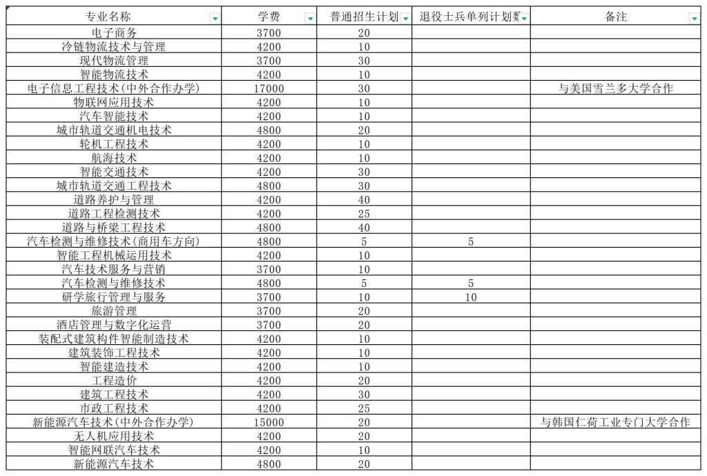 退役士兵单列计划:学校在研学旅行管理与服务专业单列计划10人、汽车检测与维修技术专业单列计划5人、汽车检测与维修技术(商用车方向)专业单列计划5人。