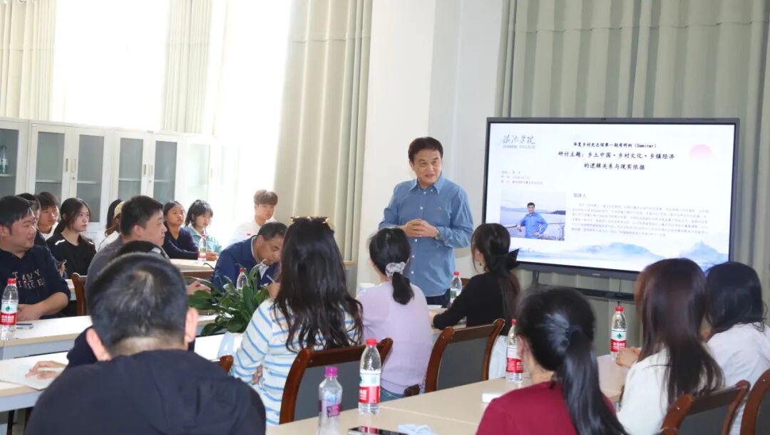围绕学术交流主题,周沛教授从费孝通先生的经典著作《乡土中国》的当代解读切入,结合我国“三农”问题的发展脉络、城镇化的最新数据与地方发展实践,系统阐述乡土社会结构、乡村文化多样性与乡镇经济发展路径之间的“内生逻辑”与“现实依据”。演讲内容旁征博引,深入浅出,既有理论高度又紧密联系实际,为现场师生提供了广阔的思考空间。