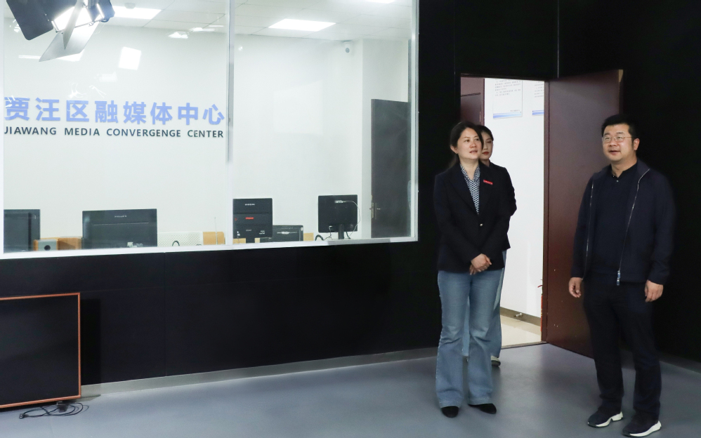 刘晓莲首先带队实地参观了贾汪区融媒体中心制作室、演播室等功能区域,详细了解融媒体平台建设、内容生产流程及技术应用等方面的情况,对贾汪融媒近年来在媒体融合发展方面取得的成效给予充分认可和积极评价。