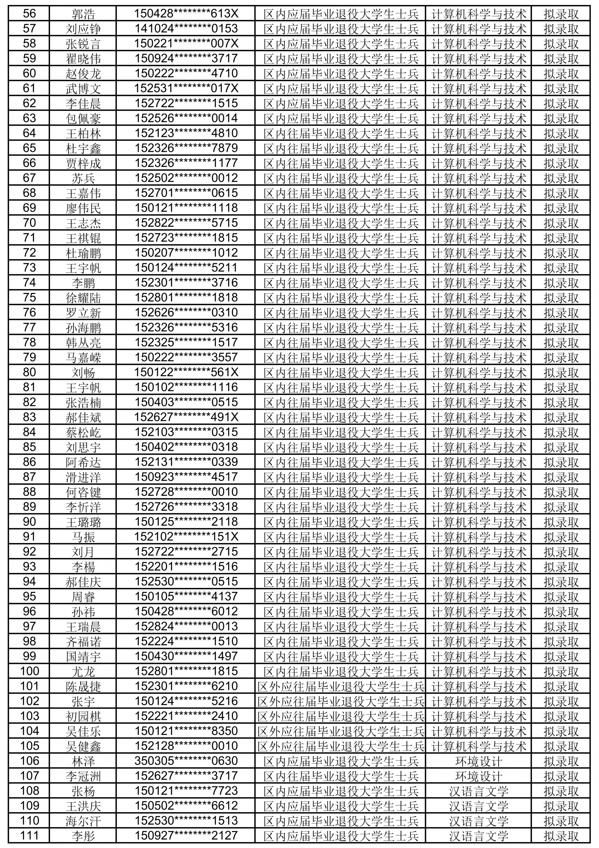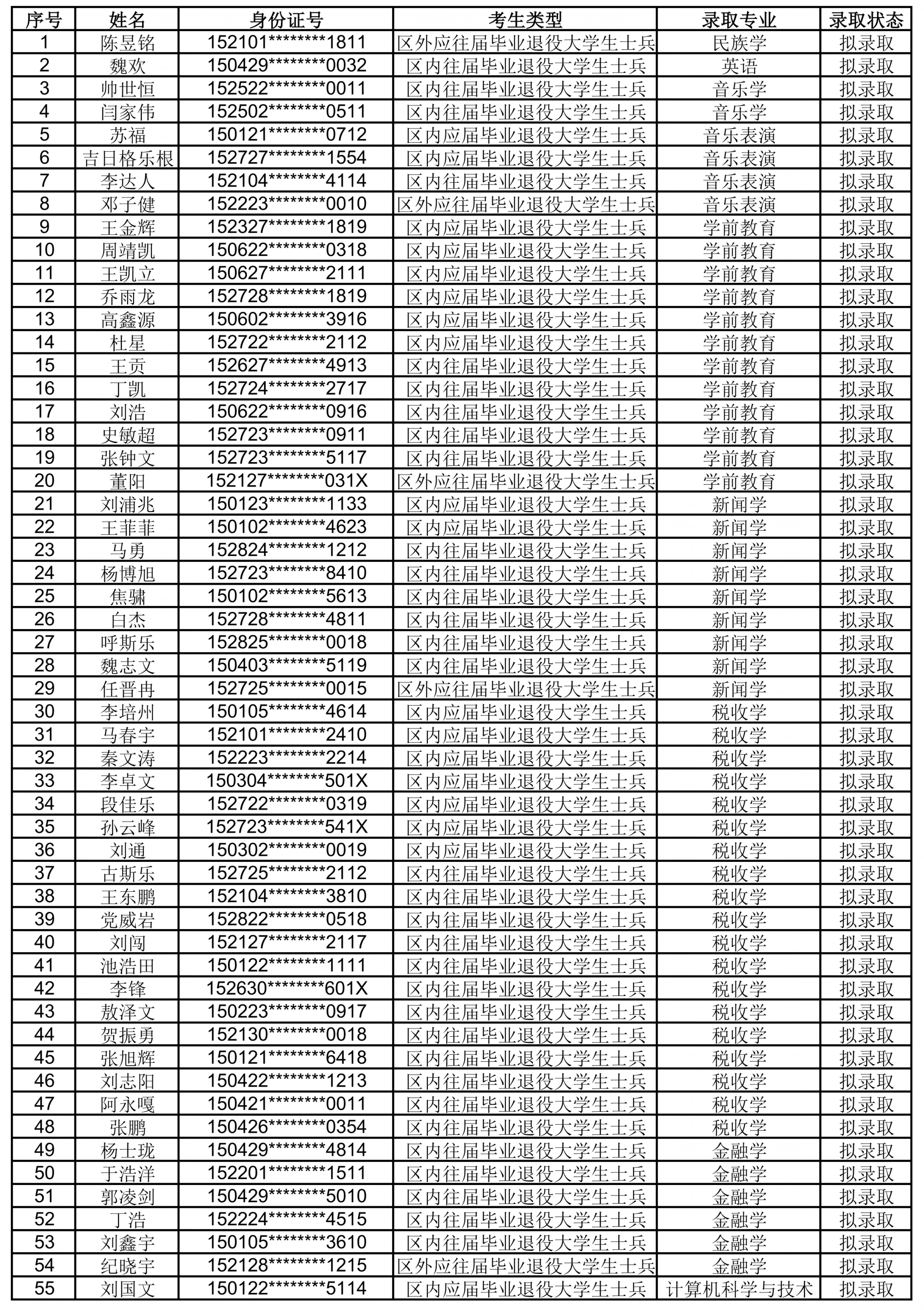 呼和浩特民族学院2026年普通高等教育专科升本科免试退役大学生士兵综合考查工作已结束,现将考查结果进行公示。公示期3天(2025年4月21日-4月23日),如有异议请向教务处反映(电话:0471-6585247)。