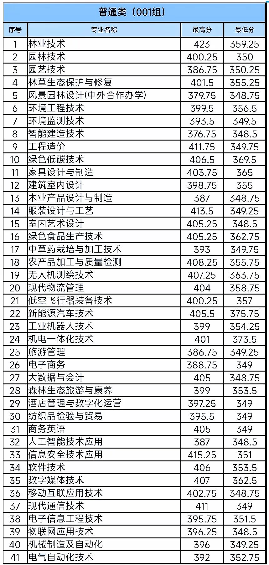 (001)普通类专业组348.5分,报考3299人;