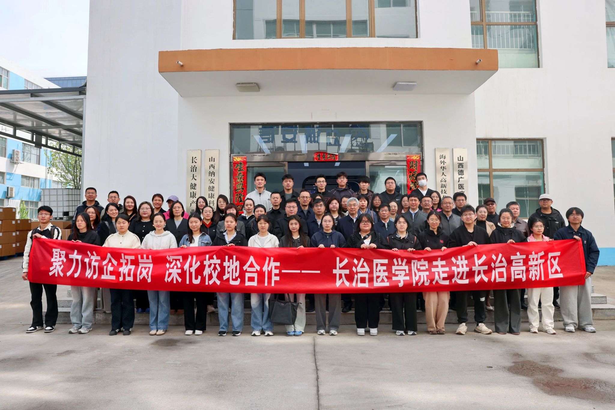 为深入贯彻党的二十届四中全会精神,全面落实“稳就业”“保就业”决策部署,深化校地合作、产教融合,4月22日上午,我校党委副书记郑金平带队,深入长治高新区重点生物医药企业开展访企拓岗专项行动。学生工作部、药学院、公共卫生学院、生物医学工程系、康复医学系负责人、教师及学生代表共80余人参加活动。长治市委统战部副部长、市工商联党组书记郭进卫,市工商联党组成员、副主席王现军,长治高新区组织部部长成亮亮,人才服务中心主任张军共同走访。