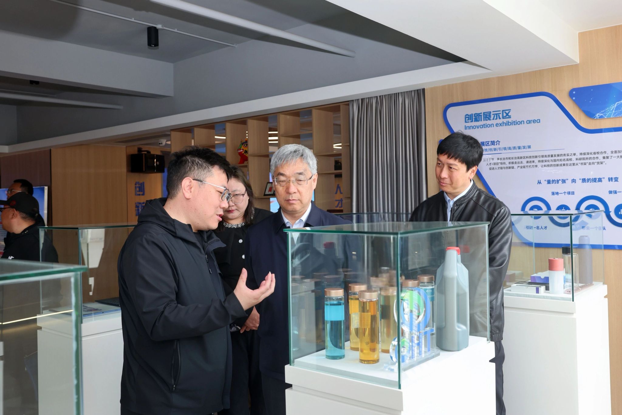 郑金平一行先后走访了安博泰克药业有限公司、山西光益生科技有限公司、山西纳安健康科技有限公司三家高新区重点企业,实地参观了研发中心、生产车间及产品展示区,详细了解企业在生物制药、医疗器械、大健康产品等领域的创新成果和人才需求。