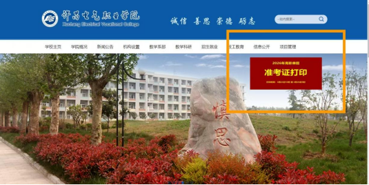 1、登录许昌电气职业学院官网:https://www.xcevc.edu.cn,点击首页“2026年高职单招准考证打印”浮窗。