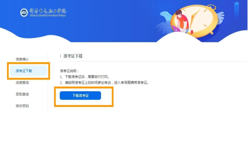 3、核对个人信息无误后,点击左侧准考证下载,下载准考证文件,自行打印。