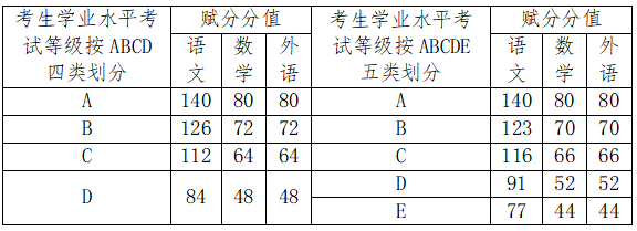(二)考试内容 1. 文化素质考试 考试方式:笔试。 考生类别:无法提供普通高中学业水平考试成绩的考生。 考试内容以《中等职业学校公共基础课课程标准》为基本依据的文化基础综合考试,由语文、数学、外语三部分组成,语文满分140分,数学满分80分,外语满分80分,总分为300分。 2.职业技能测试 考试方式:笔试。 考生类别:无法提供普通高中学业水平考试成绩的考生。 按考生报考专业所属类别(以教育部《职业教育专业目录(2021年)》为依据)分类别进行测试,测试内容以《中等职业教育专业简介(2022 年修订)》为基本依据,重点考察考生的综合专业能力、岗位技能、通用技术等,总分为300分 。 3.职业适应性测试 考试方式:笔试。 考生类别:能够提供普通高中学业水平考试成绩的考生及报考退役士兵单列计划的考生。 重点考察考生的专业素养、科学素质、职业潜能、职业倾向等,总分为300分。 4. 能够提供普通高中学业水平考试成绩的考生文化素质考试成绩原则上采用普通高中学业水平考试成绩替代,按照语文、数学、外语三科的普通高中学业水平考试等级进行赋分,其中语文满分140分、数学满分80分、外语满分80分,具体赋分办法如下:
