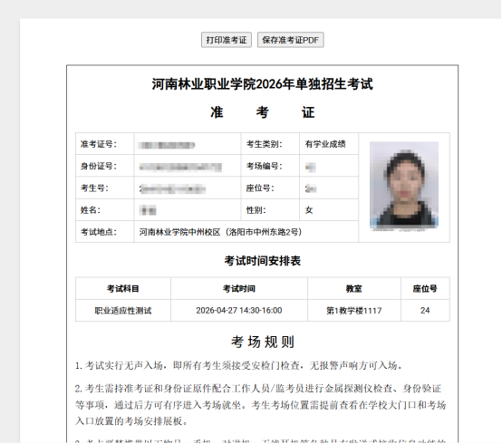 河南林业职业学院2026年单招考试将于4月27日举行,为保证考试顺利进行,现将相关事宜公告如下: