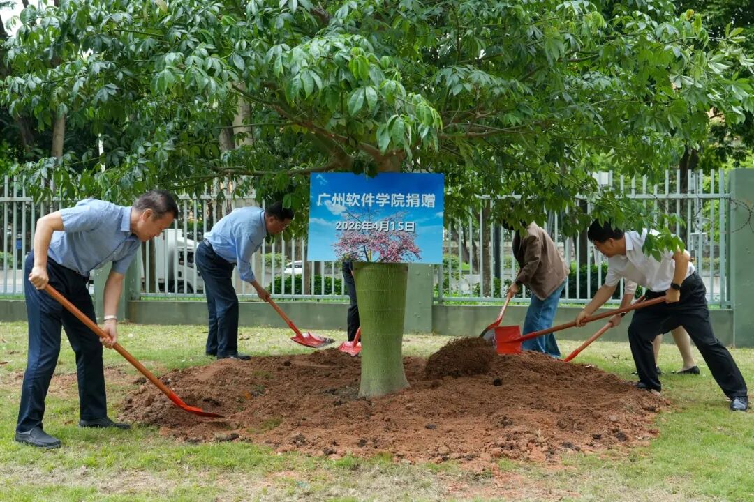 会前,广州软件学院向深圳大学捐赠了异木棉,双方在沧海校区共同举行简短而温馨的培土仪式。异木棉挺拔向阳,寓意两校友谊根深叶茂、常青长存。