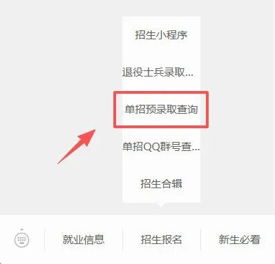 02点击菜单栏“招生报名”—“单招预录取查询”