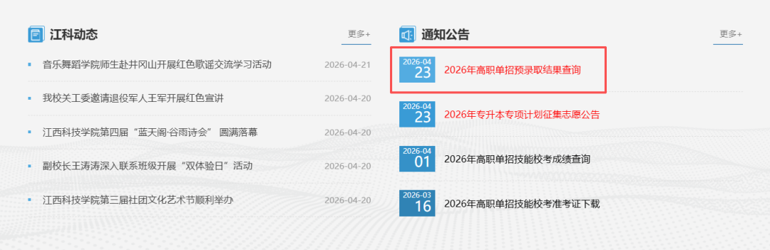 查询方式一:登录江西科技学院官网,https://www.jxit.edu.cn/,查询预录取结果。