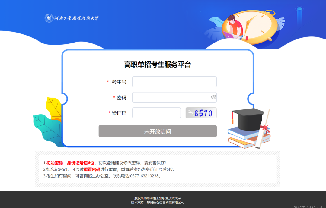 02 打开高职单招考生服务系统点击“高职单招考生服务平台”飘窗,打开系统,如下图