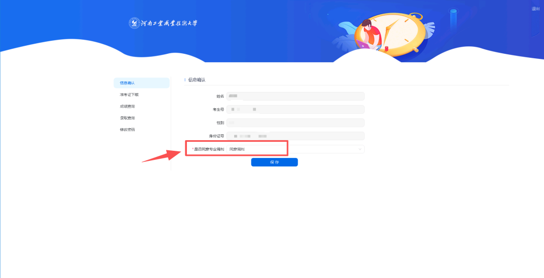 输入考生号、密码(初始密码为身份证后六位)和验证码,登录系统,首先完善调剂信息,如下图
