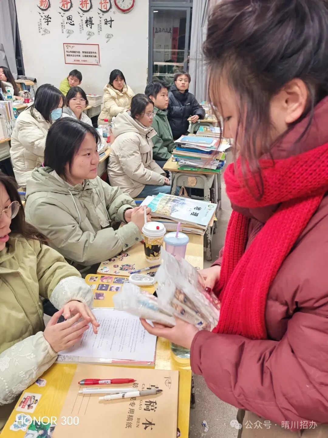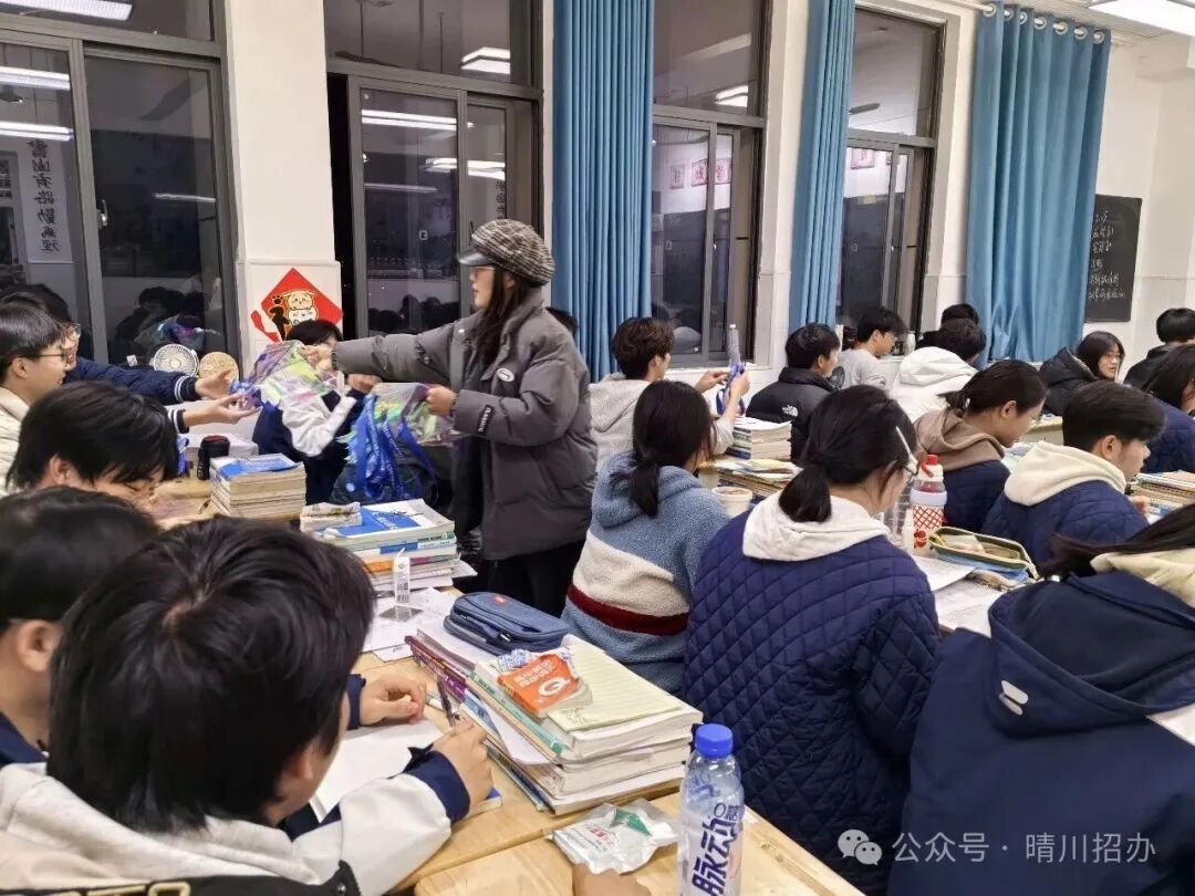 图为在班级内发放文创礼品