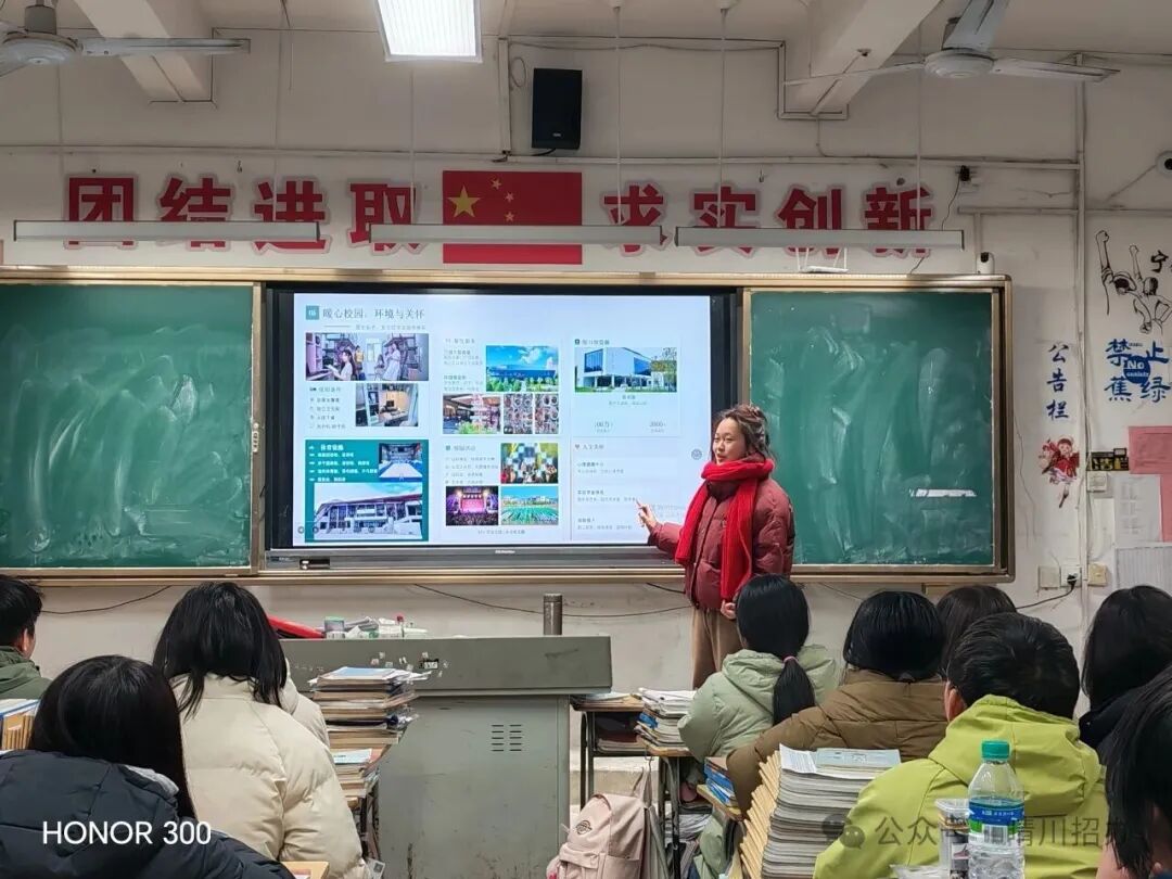 团队精心制作了PPT和高考加油视频,提前与母校老师沟通,确定了宣讲班级和时间。进入班级后,团队成员分享了武汉晴川学院的专业特色、校园生活和升学优势,并针对高三学生关心的备考问题进行了细致解答。宣讲过程中,同学们互动积极,最后合影留念。