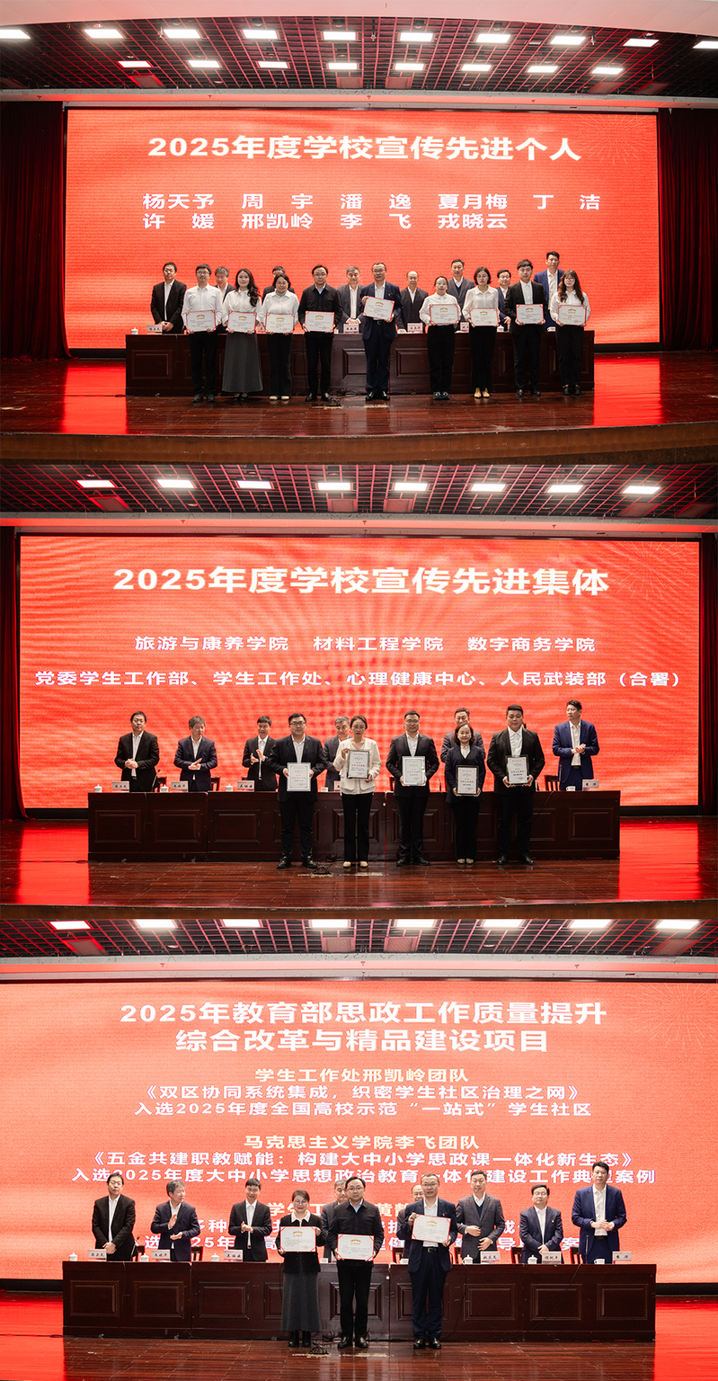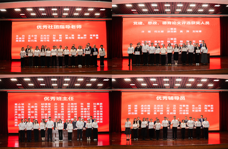 会上,校领导分别为2025年度教育部高校思想政治工作质量提升综合改革与精品建设项目获奖人员,学校宣传先进集体和先进个人,党建、思政、德育论文评选获奖人员,优秀班主任、优秀辅导员、优秀社团指导老师颁奖。
