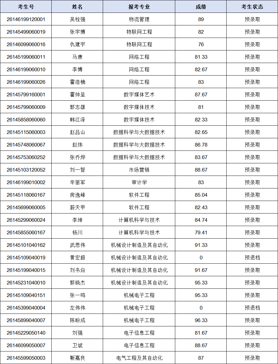 目前,我校2026年专升本退役大学生士兵免于文化课考试第三次职业适应性测试工作已经结束,经学校专升本招生录取工作领导组审核同意,现将职业适应性测试成绩及拟录取名单进行公示,公示期为7个工作日。
