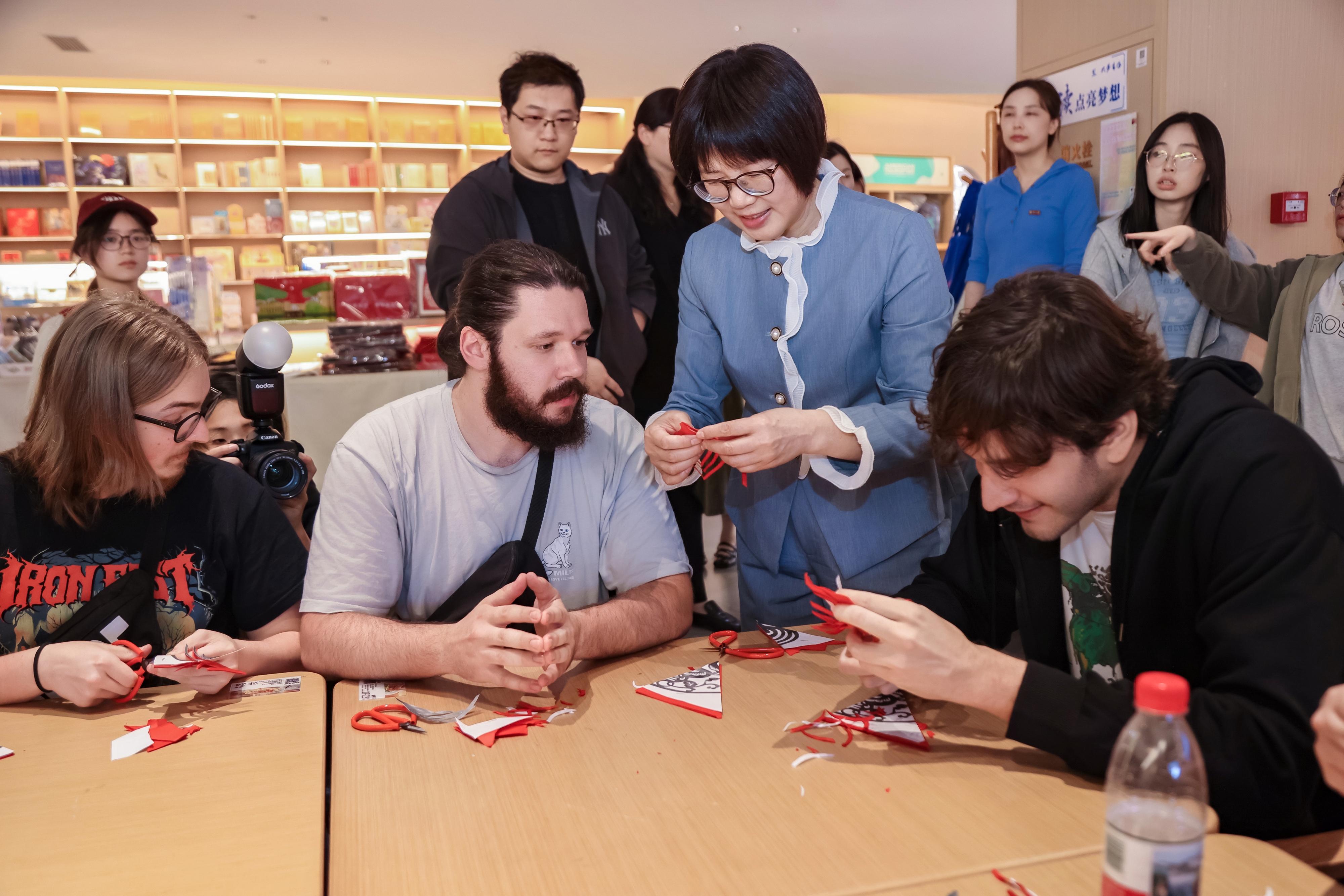 周冬梅指导留学生体验剪纸技艺