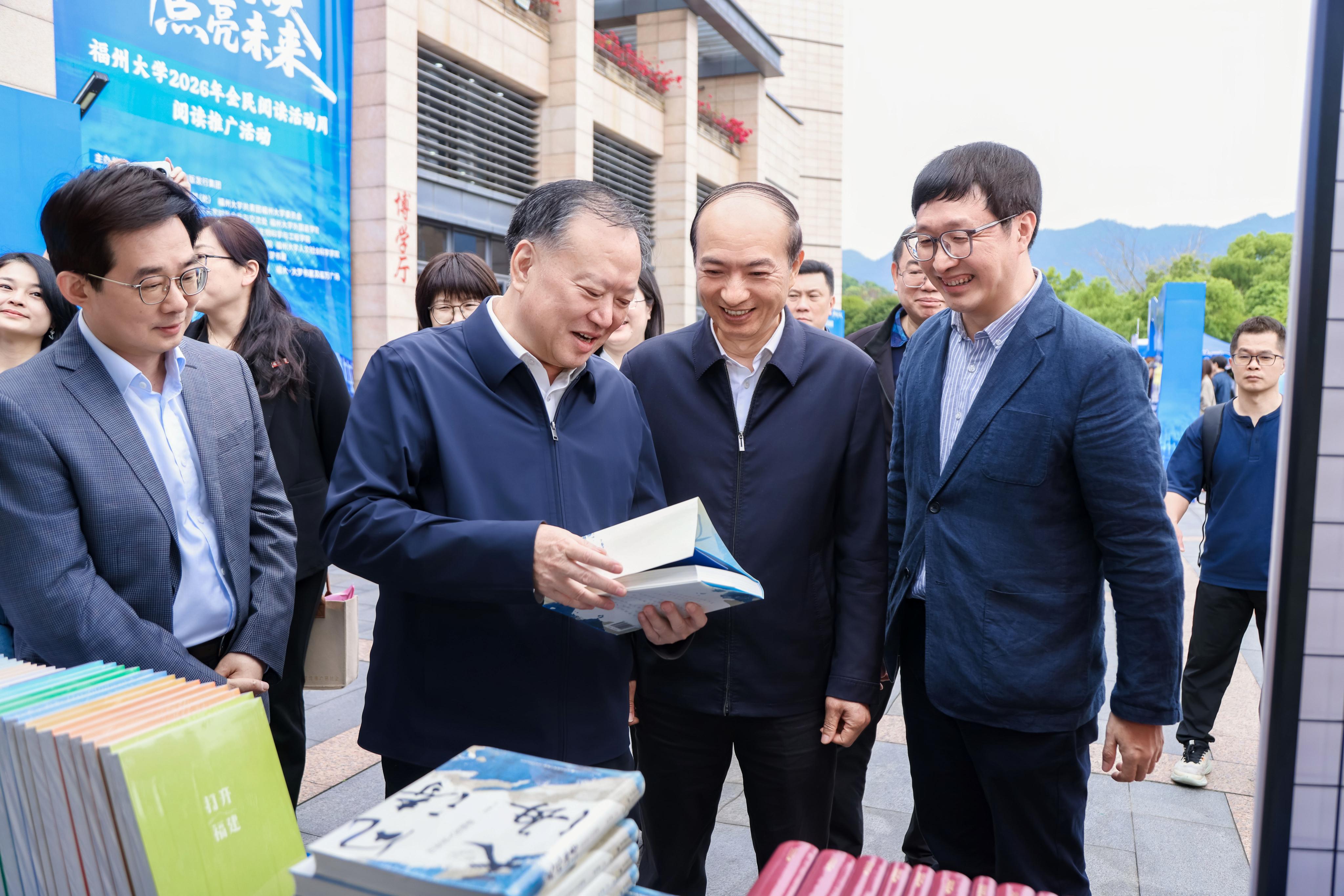 融媒中心讯/4月25日上午,在《全民阅读促进条例》正式施行后的首个“全民阅读活动周”到来之际,福州大学以“科学阅读·点亮未来”为主题举办大型阅读推广活动。福建省人大教育科学文化卫生委员会主任委员许守尧,海峡出版发行集团党委书记、董事长黄苇洲,福建省福文化研究院院长马照南,中国非物质文化遗产保护协会副会长陈吉,福建省直机关文联常务副主席陆永建,校党委书记、校长吴明红院士等领导嘉宾出席活动。校党委常委、副校长王心晨主持活动。