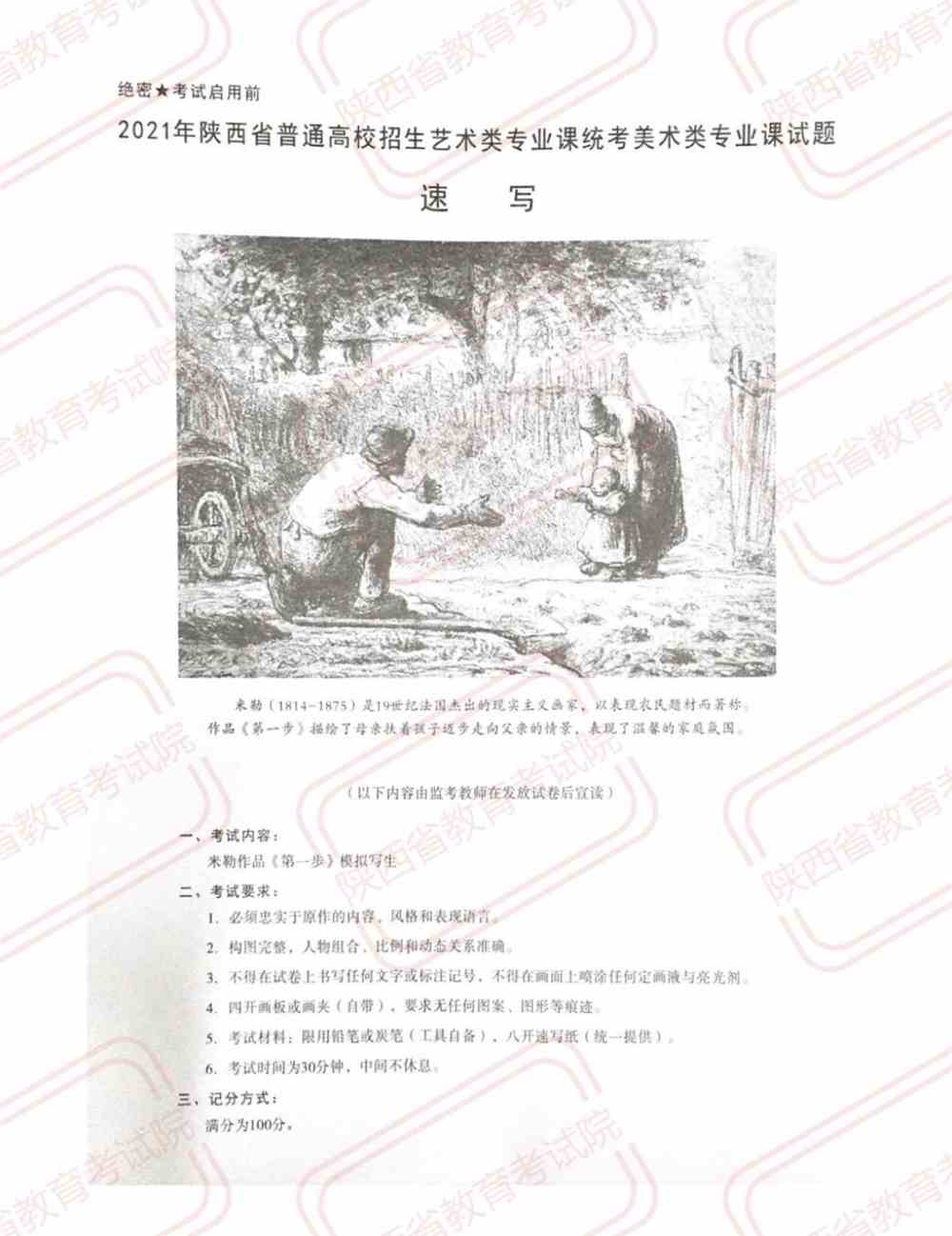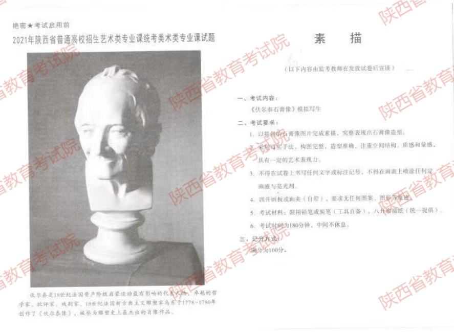 2021陕西美术统考考题及示范画(素描)