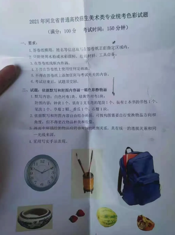 2021河北美术统考考题及示范画(色彩)