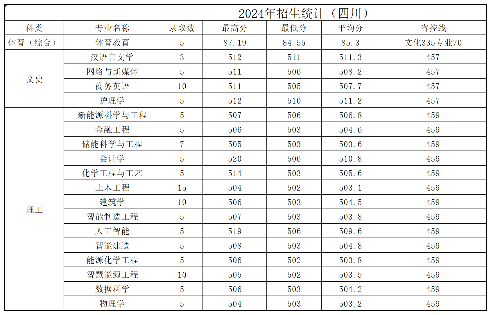 黄淮学院2024年四川省招生录取统计