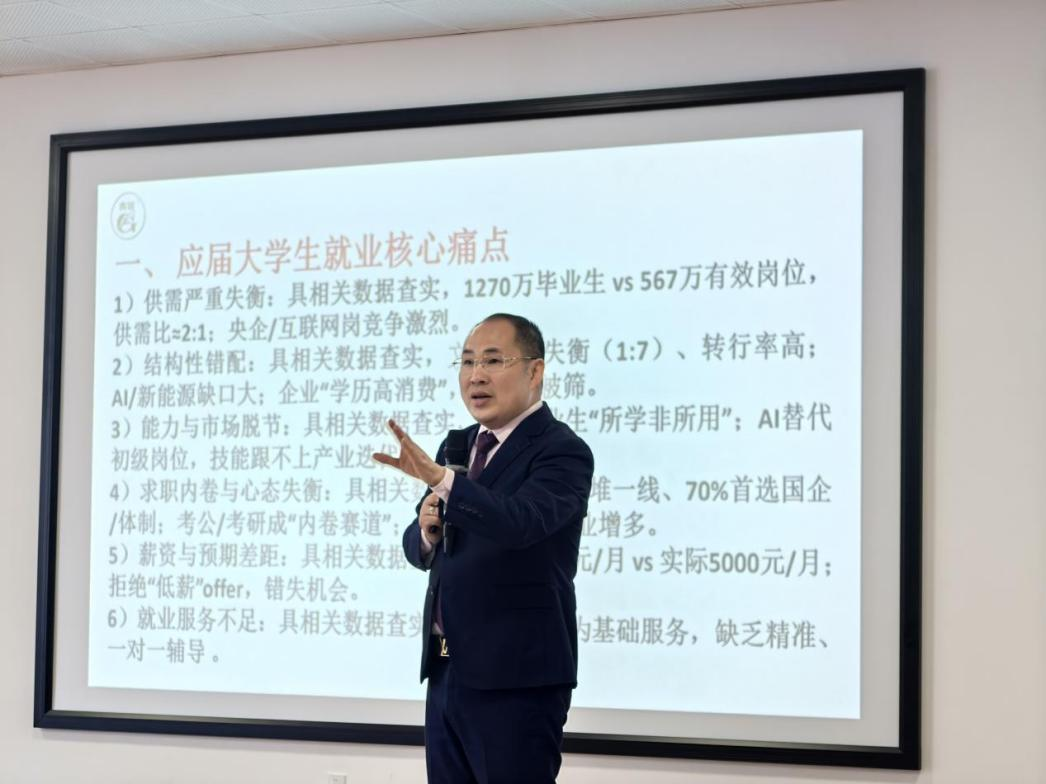 宣讲会上,贵习控股集团商学院院长刘弘坤详细介绍了公司的发展历程、企业文化、人才晋升机制及本次招聘岗位的具体要求,并与在场学生进行了互动交流,解答了同学们关心的职业发展问题。