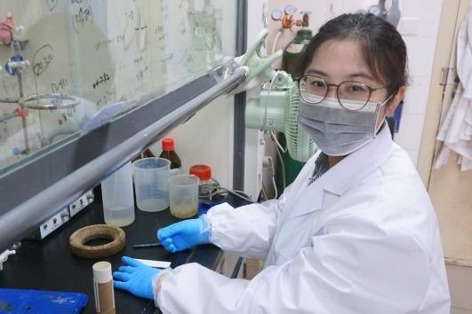 △药学系王蔚博士在实验室工作