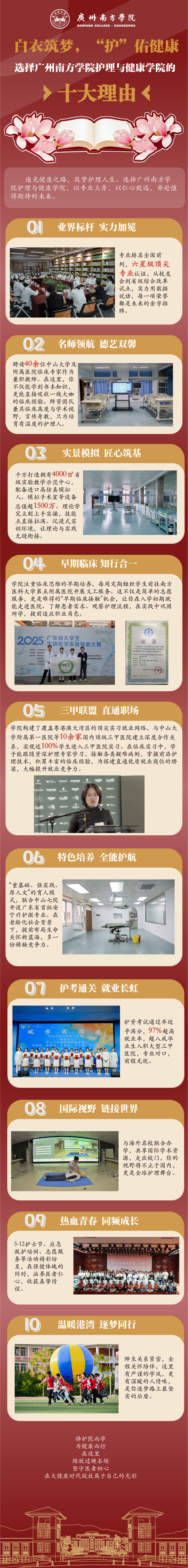 广州南方学院护理与健康学院成立于2012年,开设四年制护理学专业及“安宁疗护”微专业,构建“重基础,强实践,厚人文”的应用型护理人才培养模式。