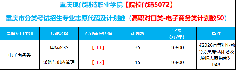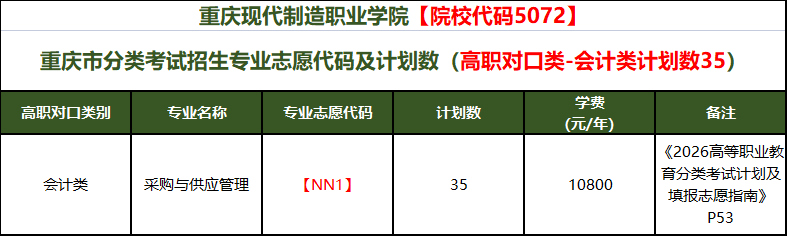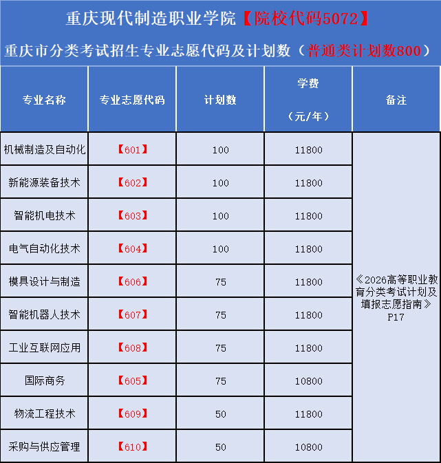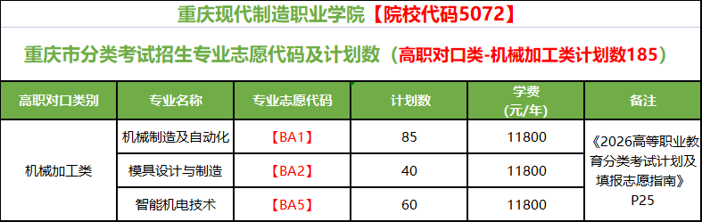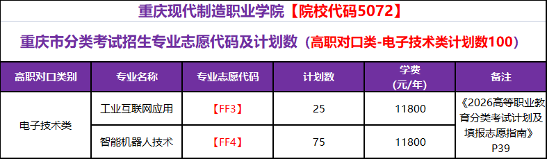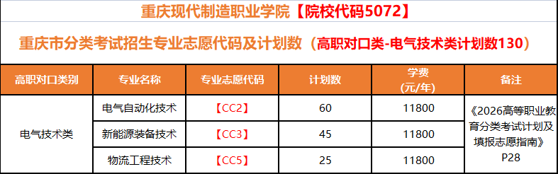 重庆现代制造职业学院2026年重庆市分类考试招生计划一览