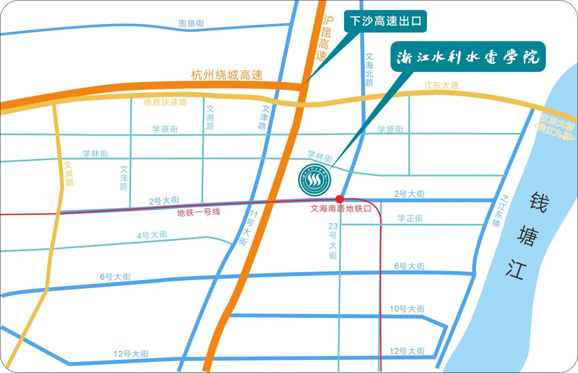 2.交通方式:①乘坐地铁(地铁1号线)来我校的考生及家长,到文海南路站B出口出站直行100米即可。②自行驾车来我校的考生及家长请导航至浙江水利水电学院钱塘校区南门(杭州市钱塘区2号大街508号)。