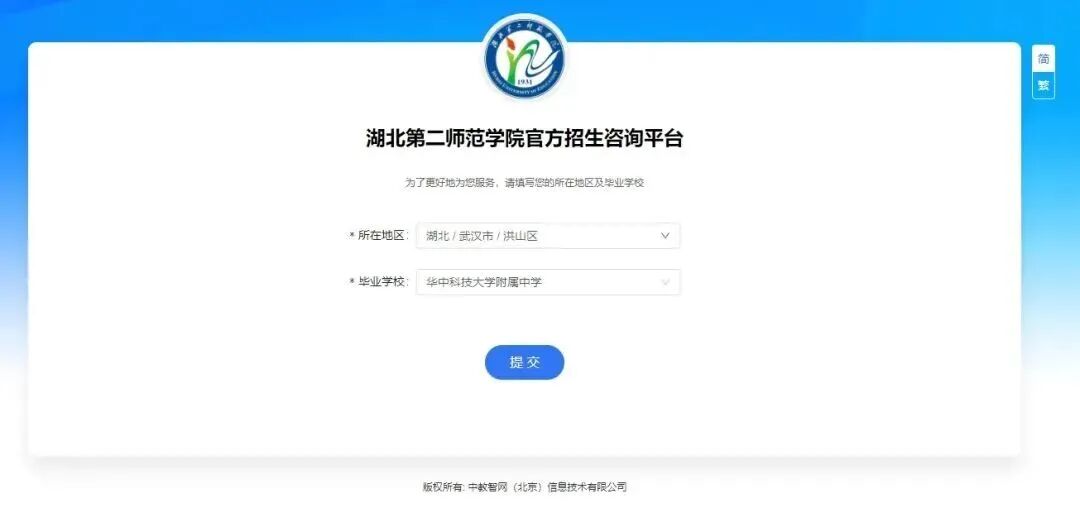 1.招生信息网:登录https://zszx.hue.edu.cn,点击右侧“智能机器人小E”,在登录界面完善基础信息后即可在线咨询或留言。(操作详情见下图)