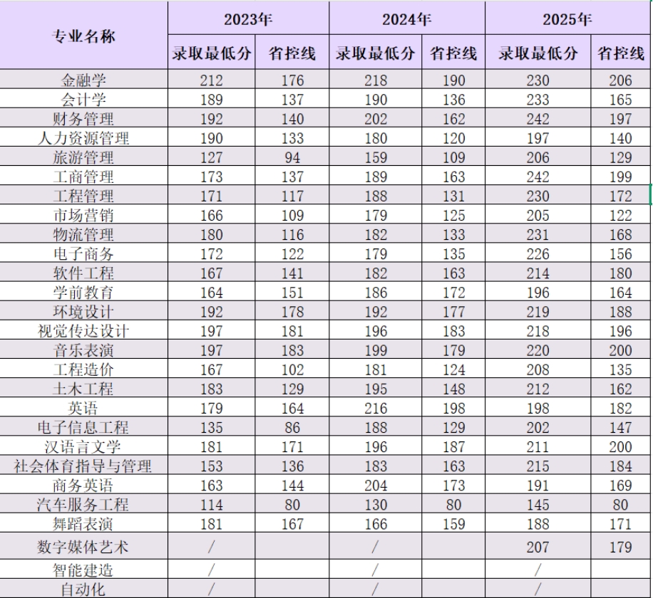 四、我校2026年专升本招生专业近三年录取最低分