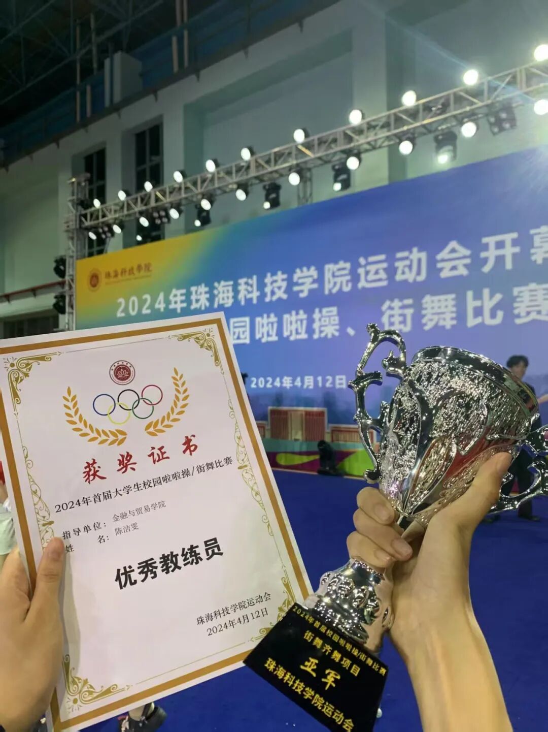 ▲陈洁雯在校运会啦啦操/街舞比赛获评“优秀教练员”